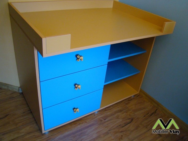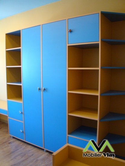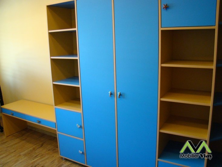 DetaliiMobilierul se realizeaza la comanda in functie de cerintele clientului(Dimensiuni,Nuante Pal,Accesorii) din Pal Melaminat 18 mm. Accesorii de cea mai buna calitate.Cant ABS de 2mm si 0,5mm. Manere plastic cu forma de animalute.