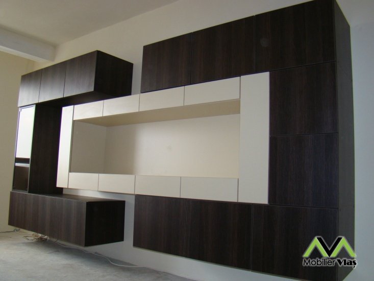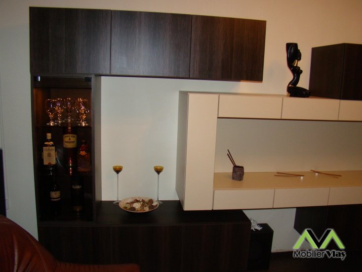 Usi cu sistem "Push", prin simpla apasare pe usa.Usa sticla fumurie.Halogene.Mobilierul se realizeaza la comanda in functie de cerintele clientului(Dimensiuni,Nuante Pal,Accesorii)
