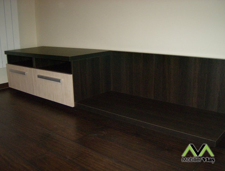 DetaliiMobilierul se realizeaza la comanda in functie de cerintele clientului(Dimensiuni,Nuante Pal,Accesorii) din Pal Melaminat 18 mm. Accesorii de cea mai buna calitate.Cant ABS de 2mm si 0,5mm.Glisiere cu extractie totala pe bila la sertare.Picioare Reglabile.Usi cu Balamale FGV. Manere Metalice.