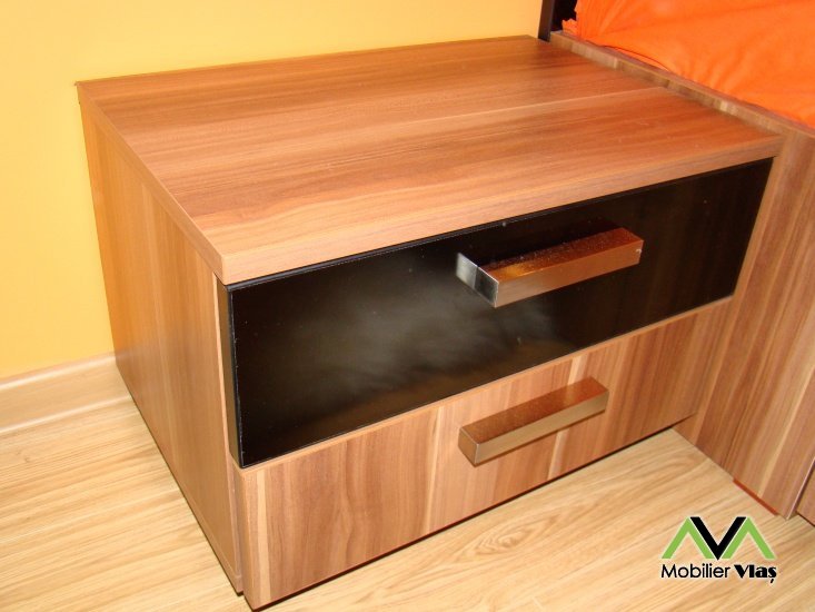 DetaliiMobilierul se realizeaza la comanda in functie de cerintele clientului(Dimensiuni,Nuante Pal,Accesorii) din Pal Melaminat 18 mm. Accesorii de cea mai buna calitate.Cant ABS de 2mm si 0,5mm. Glisiere cu extractie totala pe bila la sertare.Picioare reglabile. Manere metalice.