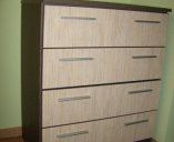 din Pal Melaminat 18 mm. Accesorii de cea mai buna calitate.Cant ABS de 2mm si 0,5mm. Glisiere cu extractie totala pe bila la sertare.Picioare Reglabile. Manere Metalice.