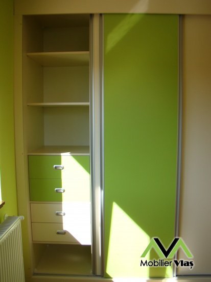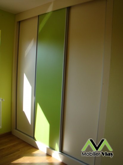 DetaliiMobilier cu usi culisante. Mobilierul se realizeaza la comanda in functie de cerintele clientului(Dimensiuni,Nuante Pal,Accesorii) din Pal Melaminat 18 mm. Accesorii de cea mai buna calitate.Cant ABS de 2mm si 0,5mm.